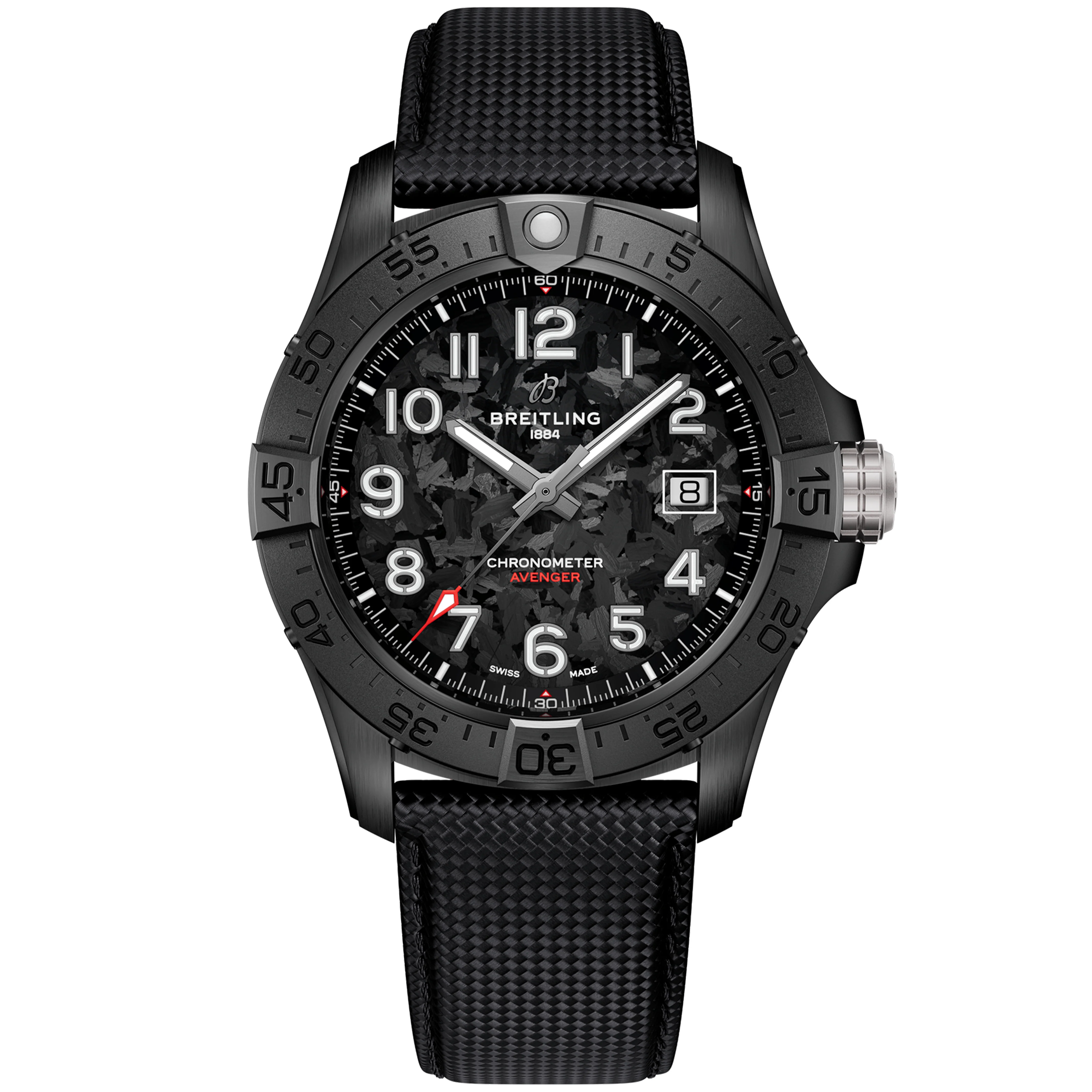 The Avenger: Bold, powerful, and built to withstand anything. The Avenger is the modern face of Breitling's performance-first philosophy. With its large case and superior water resistance, it's designed for action.