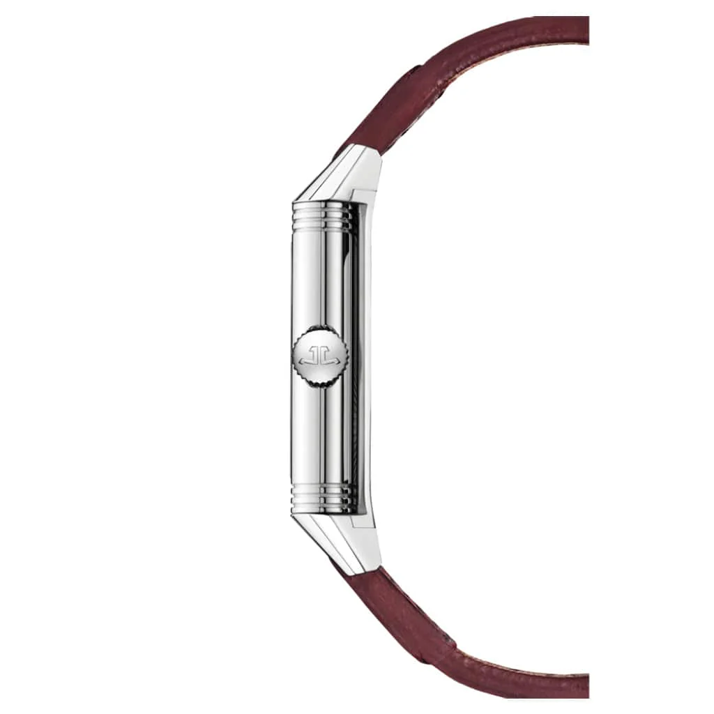 This Timepiece Comes In A Stainless Steel 45.6 X 27.4mm Case. Dial Is Burgundy Red With A Sunray-Brush And Appliqued Hour-Markers. Functions Include Hour - Minute, Seconds With Manual-Winding On A Leather Strap.