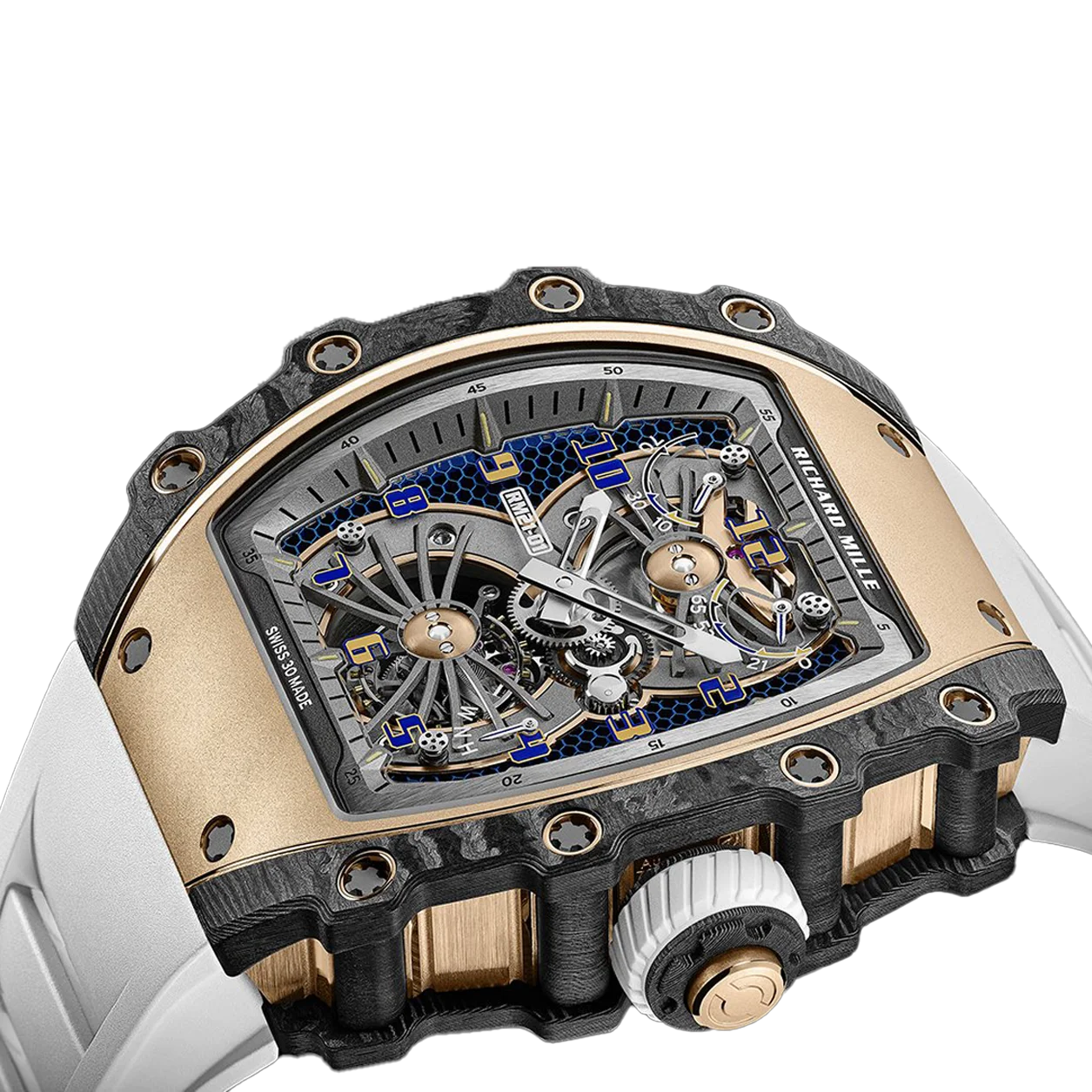 The superlative quality of a Richard Mille watch is in equal measure due to its architecture and the materials it is made of. Naturally, it would be impossible to design watches capable of resisting extreme conditions without using constituents that were themselves created to handle punishing demands. In capitalising on engineering materials—particularly from the fields of aeronautics and Formula 1—and testing their potential applications in a watch movement or its housing, Richard Mille brings into being watches whose precision, lightness and reliability are intimately bound to the materials employed.