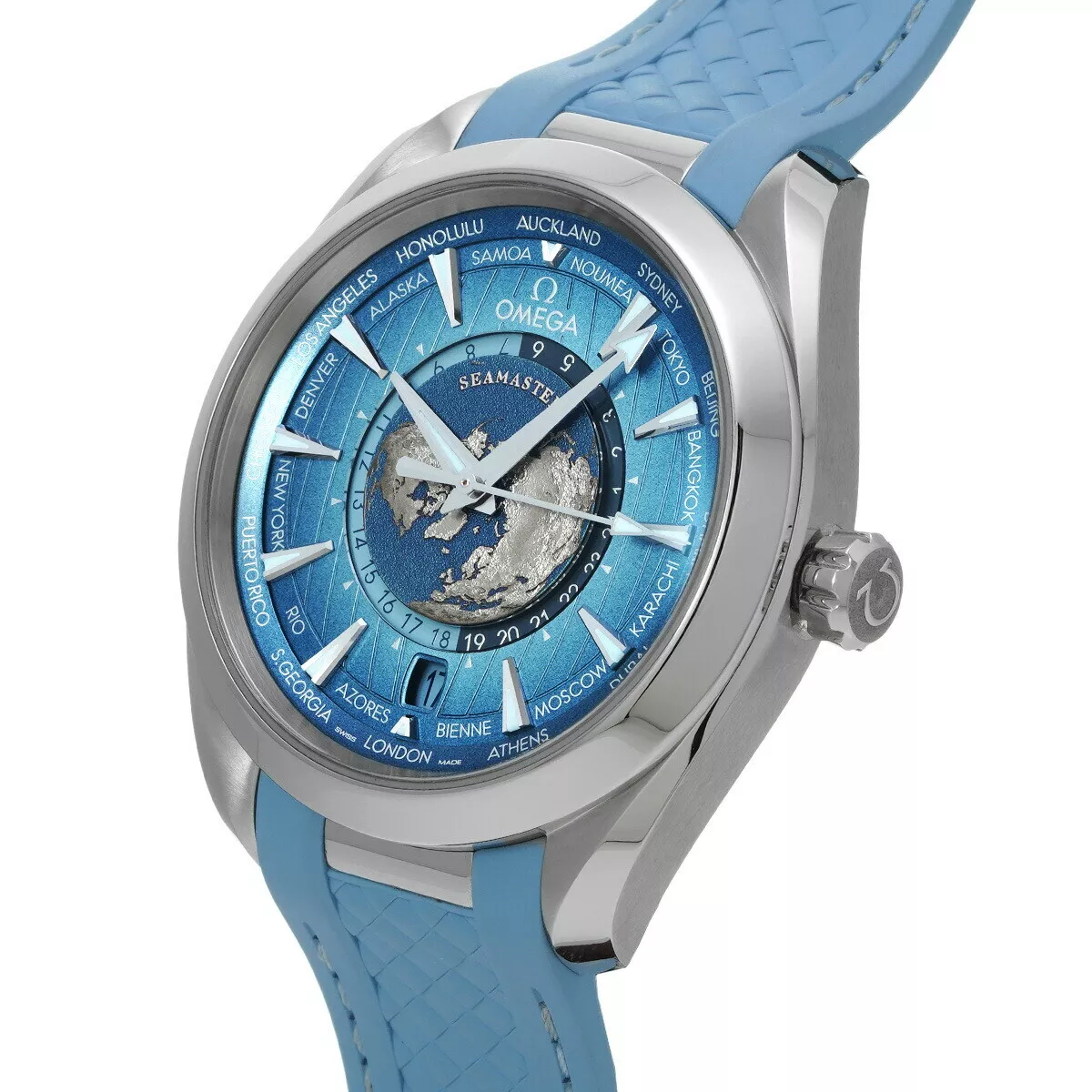 Keep track of time wherever you are in the world with the Omega Seamaster Aqua Terra Worldtimer collection.